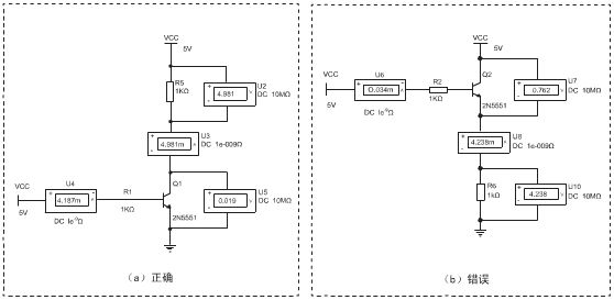 初學(xué)者使用晶體管驅(qū)動負(fù)載時,有時會錯誤地把負(fù)載接在晶體管發(fā)射極一端,如圖3(b)所示,這樣做負(fù)載上得到的功率會比較小。我們可以通過仿真來分析。