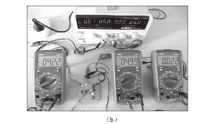 我們制作了晶體管的測試電路板,分別對NPN 型晶體管2N5551、PNP 型晶體管2N5401 驅(qū)動電路中相同負(fù)載的不同接法做了實物測試。圖4(a)是晶體管測試電路板的原理圖,將圖4(a)左邊J1 的1、2 引腳短接,可以測試NPN 型晶體管負(fù)載驅(qū)動電路;將J1的2、3引腳短接,可以測試PNP型晶體管負(fù)載驅(qū)動電路。
