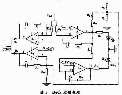 Buck控制采用了最大占空比為100%的UC3842芯片,不對(duì)稱(chēng)橋控制采用了最大占空比為50%的UC3844芯片。同時(shí)兩級(jí)電路都采用電壓型的控制。不對(duì)稱(chēng)橋采用的是前饋控制,當(dāng)輸入的電壓有波動(dòng)時(shí),占空比能夠相應(yīng)調(diào)整,以保證前級(jí)的輸出基本不變,如圖5所示。