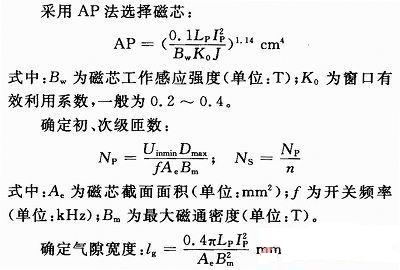 確定已知參數(shù):直流輸入電壓的最大值Uinmax和最小值Uinmax;輸出電壓Uo、功率Po;開關(guān)頻率f、工作效率η、開關(guān)導(dǎo)通壓降UDS。在反激變壓器中,次級反激電壓VOR與輸入電壓之和不能高于開關(guān)管的耐壓USmax,
