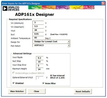 圖8.ADP1613升壓轉(zhuǎn)換器EXCEL設(shè)計工具