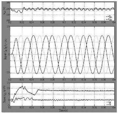 在正常工作條件下, 穩(wěn)壓器輸出穩(wěn)定的直流母線電壓和d 軸電流控制, 但是逆變器負(fù)荷不均衡, 就會產(chǎn)生波動的直流電壓, 因此整流器在不平衡負(fù)載下會造成前端總諧波失真( THD) 的輸入電流。