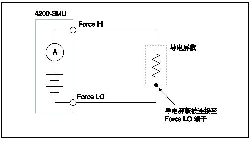 · 屏蔽DUT,并將屏蔽層在電氣上連接至測(cè)試電路公共端——4200-SCS的Force LO端子。