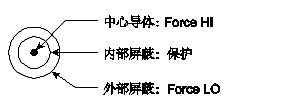 保護(hù)是由一個(gè)低阻源驅(qū)動(dòng)的導(dǎo)體,其輸出為或接近高阻端子的電勢(shì)。保護(hù)端子用于保護(hù)測(cè)試夾具和電纜絕緣電阻和電容。保護(hù)是三軸連接器/電纜的芯屏蔽,如圖10所示。