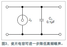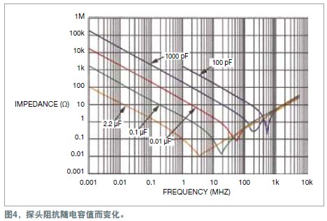 電容應采用多層堆疊式的瓷片電容,因為它能更好地去耦高頻噪聲。電解電容、紙電容以及塑料薄膜電容都有兩片金屬箔。金屬箔由一片電介質(zhì)分隔開,這三部分構成一個卷狀物。這種結構有自身的電感;因此,當頻率高于數(shù)兆赫茲時,它更類似于一只電感,而不是電容。圖4顯示了各種堆疊式瓷片電容值對電源的阻抗。