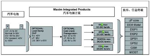 大多數(shù)系統(tǒng)電源的基本架構(gòu)選擇應(yīng)從電源要求以及汽車廠商定義的電池電壓瞬變波形入手。對(duì)于電流的要求應(yīng)該反映到電路板的散熱設(shè)計(jì)。表1歸納了大多數(shù)設(shè)計(jì)的電路及電壓要求。