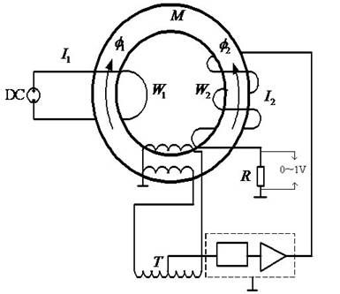采用磁性比較方法,M為高導(dǎo)磁率材料鐵芯,、為比例繞組,、分別提供給、直流電流。得到的直流磁勢分別為, ,由于兩個磁勢和方向相反,當(dāng)時,即鐵芯內(nèi)合成磁通為零時,磁勢平衡方程為,且當(dāng)時,.上述說明,即使是一個數(shù)值較大的單個電流,只要有足夠的匝數(shù),便可以用較小的與之平衡,并可用表示相應(yīng)的數(shù)值,數(shù)值較小,便于直接進(jìn)行精密測量,且為常量不受其他量的影響,因此用磁性比較方法測量直流大電流可以達(dá)到較高的精度。同樣風(fēng)速、太陽輻射量等信號的測量選用與光伏發(fā)電系統(tǒng)相配套傳感器和變換器將信號其轉(zhuǎn)換為標(biāo)準(zhǔn)電信號才能送入數(shù)據(jù)調(diào)理單元。