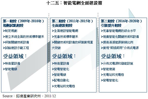 拓墣產(chǎn)業(yè)研究所所長(zhǎng)張光平表示,軟硬整合絕對(duì)是未來(lái)科技業(yè)發(fā)展的重要課題,基于對(duì)ICT基礎(chǔ)建設(shè)的迫切需求,陸續(xù)出臺(tái)的「十二五規(guī)劃綱要」執(zhí)行項(xiàng)目當(dāng)中,無(wú)論是從投資規(guī)模與十二五市場(chǎng)規(guī)模來(lái)看,物聯(lián)網(wǎng)將是受惠最大的項(xiàng)目之一,2015年市場(chǎng)規(guī)模將達(dá)8,000億元人民幣,較2011年成長(zhǎng)174%。其中又以建設(shè)智能電網(wǎng)為投資首選,預(yù)計(jì)2015年包括傳感器、系統(tǒng)與試驗(yàn)檢測(cè)、芯片與中介軟件、即成模塊與設(shè)備等產(chǎn)業(yè)產(chǎn)值將達(dá)到2,000億元人民幣。