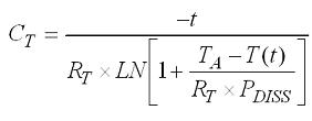 該模擬可以深入進(jìn)行,以描述器件的另一個(gè)熱屬性,稱(chēng)之為熱容。正如將熱阻模擬為電阻,可以將熱容(CT,單位為J/℃)模擬為電容。將熱容與熱阻并聯(lián)獲得熱阻抗(ZT)。圖1所示為傳導(dǎo)傳熱的簡(jiǎn)化RC模型。能源被模型化為電流源,熱阻抗被模型化為CT與RT并聯(lián)。