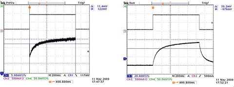 因?yàn)殡娏饔行┹p微依賴(lài)MOSFET的導(dǎo)通電阻,所以有必要在電流接近目標(biāo)閃光電流時(shí)測(cè)量 PFET電阻。使用大測(cè)試電流的問(wèn)題是它們可能導(dǎo)致器件發(fā)熱??朔藛?wèn)題的方法是將閃光超時(shí)時(shí)間設(shè)置為最低 32ms,并在示波器上測(cè)量PFET的電壓降。在+25℃到+125℃的情況下,使用1.2A閃光電流,結(jié)果顯示的斜率大約為 0.42mΩ/℃ 。要注意的一個(gè)事情是PFET通過(guò)VOUT引腳供電,因此VOUT=5V時(shí),其導(dǎo)通電阻會(huì)低于VOUT=3.9V時(shí)的電阻值。