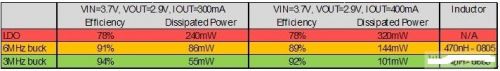 雖然選擇一個(gè)降壓轉(zhuǎn)換器來(lái)取代LDO似乎意義不大,但考慮到降壓轉(zhuǎn)換器必須能在極高占空比下工作,這就變得十分重要了。如果降壓轉(zhuǎn)換器的輸出設(shè)定為2.9V,電池電壓低到3.3V,降壓轉(zhuǎn)換器在88%的占空比下工作。在某些負(fù)載和輸入電壓條件下,降壓轉(zhuǎn)換器甚至?xí)黄韧V归_關(guān),并在100%占空比下工作。若手機(jī)開始發(fā)射GSM脈沖,在低電池電壓(VVBAT)情況下,這種情形會(huì)變得更加嚴(yán)重。GSM脈沖可能高至2A,而且在這些脈沖期間,鋰離子電池的輸出阻抗會(huì)使電池電壓下降400mV。對(duì)LDO而言,
