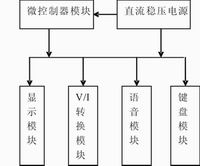 本設(shè)計采用單片機作為主要控制部件,通過鍵盤預(yù)置輸出電流值并采用液晶模塊實時顯示。整個系統(tǒng)硬件部分由微控制器、電壓-電流轉(zhuǎn)換、鍵盤、顯示、直流穩(wěn)壓電源和語音提示等模塊組成。系統(tǒng)組成框圖如圖1所示。