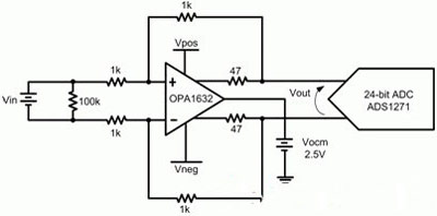 由于運算放大器的PSRR進一步降低了電源的微小變化,因此您可能會錯誤地得出如下結論:電源電壓的微小變化在系統(tǒng)中影響極小或者沒有影響。作為一個定量舉例,我們可對一個全差動運算放大器進行分析,其將信號緩沖至一個24位ADC。