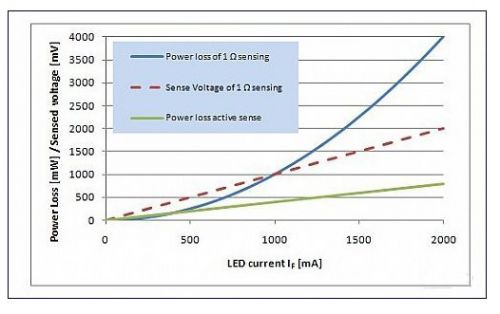 因此,更好的解決方案是一個(gè)在 LED 驅(qū)動(dòng)器中的有源電流阱或者電流源,如圖 3 所示。我們可使用一種壓降和由此產(chǎn)生的功耗都得到降低的方法對(duì)內(nèi)部電流檢測(cè)電阻進(jìn)行調(diào)節(jié),具體調(diào)節(jié)情況取決于 LED 電流的大小。如果為低 LED 電流,則壓降可以維持足夠的高以獲得精確的檢測(cè)信號(hào)。