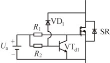 市場上現(xiàn)有的絕大部分智能同步整流驅(qū)動芯片都采用了檢測U DS電壓信號的方法。如圖4所示。該驅(qū)動方案的優(yōu)點是驅(qū)動電路簡單,變流器可以工作于不同的三種模式。但是同步整流驅(qū)動芯片對外圍電路的參數(shù)設(shè)計非常敏感,如SR的導(dǎo)通電阻、檢測電路中的引線電感及同步管的工作溫度等,因此容易受到外界的干擾,而且它也受到芯片本身的條件制約(芯片的工作頻率,關(guān)斷延時等)。因此它對PCB的布板設(shè)計和變流器的工作頻率等都有比較高的限制要求。圖5是一種采用分離元件組成的檢測U DS電壓型驅(qū)動方案。其電路比較簡單,但同樣也比較容易受到干擾,而且二極管VD1與三極管VTd1的選擇比較困難。