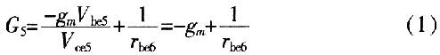 這是一個負電導。正電阻吸收能量,負電阻提供能量,而此處VQ5的集電極到發(fā)射極的負電導表示晶體管提供能量轉(zhuǎn)換,將直流電源的能量轉(zhuǎn)換為交流能量。同理,VQ6的集電極到發(fā)射極(即BM兩端)的等效電導為-gm。則單端口網(wǎng)絡(luò)AB的輸入電阻是VQ5、VQ6兩端發(fā)射極輸出電阻的串聯(lián),即
