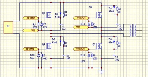 在開關(guān)管承受峰值電流和電壓的情況下,全橋輸出功率為半橋的兩倍,并切在功率大于500W時,全橋相對于半橋更合適,故本次設(shè)計采用全橋拓撲。