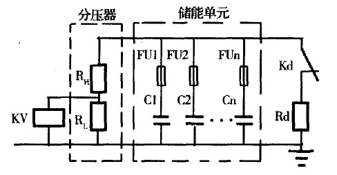 脈沖電容器儲能后,由控制電路發(fā)送命令進(jìn)行觸發(fā)放電(ETcG發(fā)射)。ETCG發(fā)射精度和一致性與PPS儲能量密切相關(guān),電容器儲能大小與其充電電壓的量值平方成正比,因此控制電路必須能精確控制充電電壓量值,這可以通過與被充電容器組并聯(lián)"分壓器一電壓繼電器組"來實(shí)現(xiàn),見圖2。
