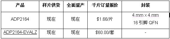 ADP2164的開關(guān)頻率可設(shè)置于500 kHz至1.4 MHz之間,或與外部時(shí)鐘同步,以消除調(diào)節(jié)器間的拍頻。兩個(gè)ADP2164調(diào)節(jié)器也可以同步、相位相差180度,從而降低輸入紋波電流以及輸入電容的大小。該調(diào)節(jié)器基于電流模式、固定頻率PWM(脈寬調(diào)制)架構(gòu),具有出色的穩(wěn)定性和瞬態(tài)響應(yīng),并與ADP2118 5 V 3 A同步調(diào)節(jié)器引腳兼容。ADP2164針對(duì)高效率多電源軌應(yīng)用而設(shè)計(jì),工作溫度范圍為−40°C至+125°C結(jié)溫范圍。