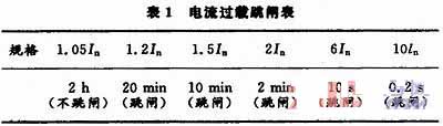 在漏電防火控制系統(tǒng)中,電流過(guò)載跳閘時(shí)間表見(jiàn)表1。
