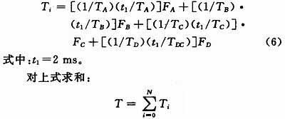式中:i表示定時(shí)計(jì)數(shù)器的中斷個(gè)數(shù);Ti為一次中斷得到的時(shí)間總和,當(dāng)時(shí)間累加和大于等于1時(shí),說(shuō)明事件應(yīng)該得到處理,處理發(fā)生在當(dāng)前事件所在區(qū)域內(nèi)。但從該式可以看出,并沒(méi)有反映電流過(guò)載熱效應(yīng)積累與長(zhǎng)延時(shí)過(guò)載電流和短延時(shí)過(guò)載電流在處理方法上的不同,無(wú)論是在20 min的跳閘還是10 s的跳閘都是在規(guī)定時(shí)間內(nèi)完成跳閘保護(hù)。為此,仍需要對(duì)上次進(jìn)行改進(jìn),為了能過(guò)反映,熱積累效應(yīng)采用反時(shí)限方法,即過(guò)載電流越大,跳閘時(shí)間越短。為了達(dá)到如此效果,將不同的電流過(guò)載下跳閘時(shí)間進(jìn)行細(xì)分,在1.2In~1.5In過(guò)載段內(nèi),將跳閘時(shí)間20 min劃分為20,19,18,…,1,同樣將對(duì)過(guò)載電流段劃分出20等分分別對(duì)應(yīng)各自的時(shí)間,同樣的方法應(yīng)用到其他電流過(guò)載段內(nèi),劃分的越密集,熱累計(jì)效果越快,跳閘時(shí)間越短。這就解決了在短延時(shí)電流過(guò)載時(shí)跳閘過(guò)慢的現(xiàn)象。于是公式變?yōu)椋?br /> 式(6)中的(t1/TA)由(t1/TA1)A1+(t1/TA2)A2+…,(t1/TA20)A20替換。式中:TA1,TA2,…,TA20代表等分時(shí)間;A1,A2,…,A20代表實(shí)際電流范圍狀態(tài)位,為1執(zhí)行相應(yīng)的加法運(yùn)算。同樣的B,C,D的轉(zhuǎn)化采用同樣的形式。