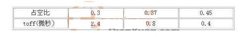 該電路具有以下優(yōu)點(diǎn):①電路結(jié)構(gòu)簡(jiǎn)單可靠,實(shí)現(xiàn)了隔離驅(qū)動(dòng)。②只需單電源即可提供導(dǎo)通時(shí)正、關(guān)斷時(shí)負(fù)壓。③占空比固定時(shí),通過(guò)合理的參數(shù)設(shè)計(jì),此驅(qū)動(dòng)電路也具有較快的開(kāi)關(guān)速度。該電路存在的缺點(diǎn):一是由于隔離變壓器副邊需要一個(gè)假負(fù)載防震蕩,故該電路損耗較大;二是當(dāng)占空比變化時(shí)關(guān)斷速度變化加大。脈寬較窄時(shí),由于是貯存的能量減少導(dǎo)致MOSFET柵極的關(guān)斷速度變慢。表1為不同占空比時(shí)關(guān)斷時(shí)間toff(驅(qū)動(dòng)電壓從10伏下降到0伏的時(shí)間)內(nèi)變化情況。