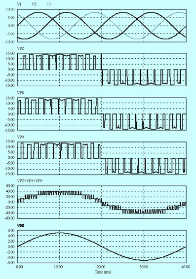 圖10 三相矩陣級聯(lián)電壓輸出圖