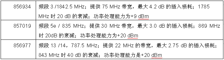 TriQuint公司的新型射頻聲表面波濾波器的技術細節(jié)速覽表