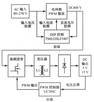 圖1 采用PWM 整流技術(shù)的高功率因數(shù)開(kāi)關(guān)電源結(jié)構(gòu)
