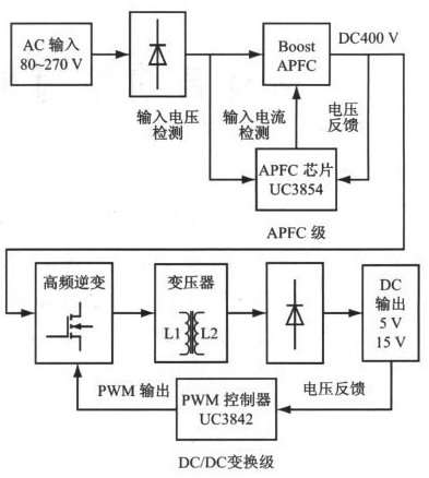 圖2 采用兩級(jí)型APFC的高功率因素開(kāi)關(guān)電源結(jié)構(gòu)