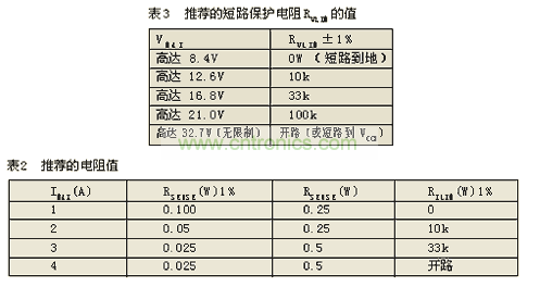 VLIM引腳到GND之間連接的外部電阻值可以決定5個(gè)充電器輸出限壓值中的任一個(gè)(見表3)。這種用硬件實(shí)現(xiàn)限壓值的方法是一種比較安全的措施,它是不能被軟件方式所取代的。