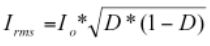 在降壓轉(zhuǎn)換器中,使用下列近似式,根據(jù)輸出電流(Io)和占空比(D)可以很輕松地計算出RMS電流: