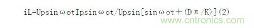 在功率放大的功率因數(shù)校正中基本上是采用升壓式變換電路,而升壓電感是串在輸入回路中,電感電流等于輸入電流,只要控制電感電流就可以達(dá)到控制輸入電流。功率開關(guān)器件的切換速率ωS遠(yuǎn)大于工頻ωo(ωS=Kωo,K 1);L值大得足以使電感中的電流連續(xù),當(dāng)功率器件開關(guān)切換脈沖占空比的變化遵循正弦規(guī)律時(shí),即所謂正弦波脈寬調(diào)制(SPWM)時(shí)電感中流過(guò)的電流為: