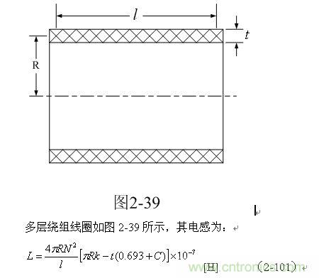 【說明】上式是用來計算多層線圈繞組、截面為圓形的空心線圈的電感計算公式。長岡系數(shù)k可查閱表2-1,系數(shù)c可查閱表2-2。當(dāng)線圈內(nèi)部有鐵芯時,有鐵芯線圈的電感是空心線圈電感的