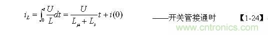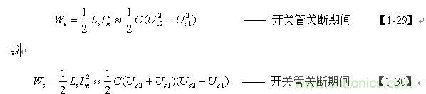 【1-42】和【1-43】式中, k=Ls/L為漏感 Ls與開關(guān)變壓器初級線圈的電感L的比值。