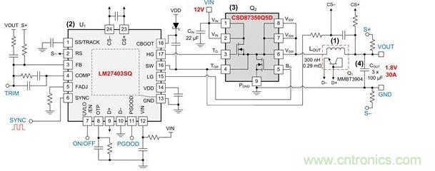 (2) PWM 控制器 — 現(xiàn)在,如果設計特別需要鐵氧體芯電感器的硬飽和特性,那么一定不能超過電感器的飽和電流。這就需要一款可充分利用寄生電路電阻實現(xiàn)精確無損電流傳感的 PWM 控制器(閱讀我之前的博客《在大電流轉換器中實現(xiàn)精確而無損的電流傳感》,了解有關該主題的更多詳情)。其它主要特性包括高效率柵極驅動器、遠程 BJT 溫度傳感以及快速誤差放大器等。