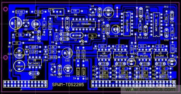 SPWM的驅(qū)動(dòng)核心采用了單片機(jī)SPWM芯片TDS2285,所以,SPWM驅(qū)動(dòng)部分相對(duì)純硬件來講,比較簡(jiǎn)單,制作完成后要調(diào)試的東西很少,所以,比較容易成功。