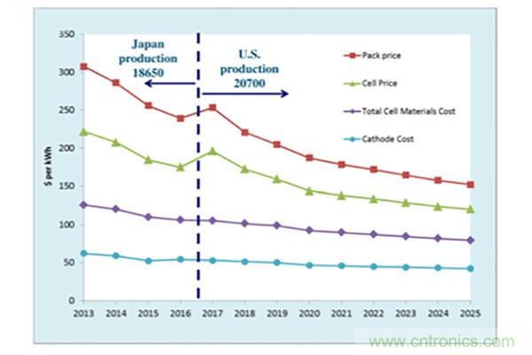 Panasonic、Samsung、LG的18650電池良率一般在98%以上(一次直通率),而國內(nèi)的一般控制在90%左右,電池的成本降低是以量和良率的不斷提高為基礎(chǔ)的,下圖為Tesla電池成本的降低圖。這里面存在的潛在風(fēng)險是:“Battery cost will go up slightly in 2017 due to high depreciation charges, but larger capacity per cell will neutralize the increase by 2018. However, if the factory is installed and utilization is below, say, 70%, there will be no cost advantage over evolutionary growth, even in 2020”。