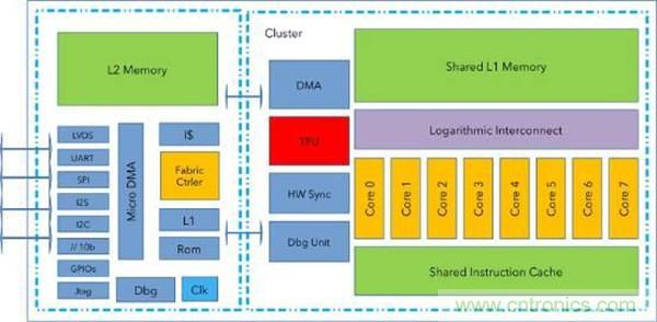 GAP8處理器來自義大利波隆納大學(Universities of Bologna)與瑞士蘇黎世聯(lián)邦理工學院(ETF Zurich)開發(fā)的RISC-V開放源碼硬體PULP核心技術(shù)轉(zhuǎn)移。GAP8采用8顆PULP核心以及1個TensorFlow處理器元(TPU),為基于硬體的模式匹配應用加速卷積神經(jīng)網(wǎng)路。