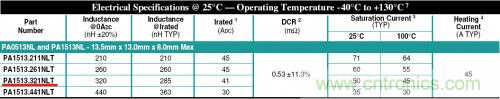 所以在實際的使用中,簡單來說,一般選擇兩個電流值里面比較小的那個作為設(shè)計限值。比如下圖中的4個PLUSE電感的 Irated,均取的Heating Current和Saturation Current其中的相對小的那個作為額定電流 。 (注意PA1513.321這個器件,為什么Irated不是45A?注意Pulse的Saturation Current定義為20%的電感值下降,41A的時候只有10%的電感值下降。)