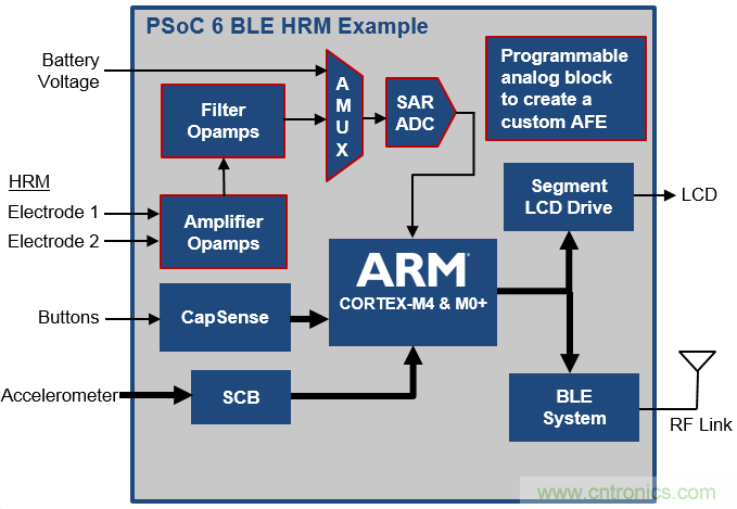 圖2:集成BLE連接與電容式觸摸感應(yīng)的PSoC 6