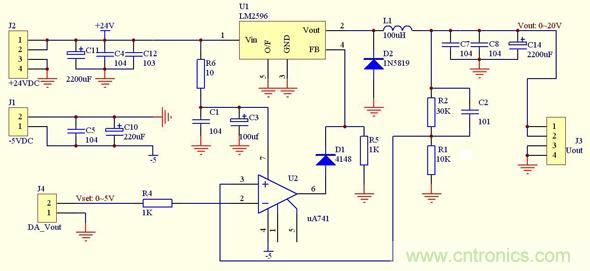 1、運放工作在比較狀態(tài),例如LM2596輸出16V,DAC輸出5V,那么運放同向端輸入電壓就為4V,這時運放輸出0狀態(tài),二極管關(guān)斷,LM2596處于開環(huán)狀態(tài),他的輸出會增大,直到使運放同向端大于反向端電壓,運放輸出1狀態(tài),使二極管導(dǎo)通,LM2596處于閉環(huán)狀態(tài),會減小輸出電壓。這樣直到穩(wěn)定。