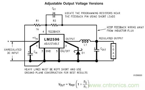 【導(dǎo)讀】DC-DC開關(guān)穩(wěn)壓電路由于其高效率、大電流的優(yōu)點被廣泛使用。可調(diào)DC-DC可以通過調(diào)節(jié)反饋分壓電阻來調(diào)節(jié)輸出電壓。圖1是常用DC-DC降壓穩(wěn)壓芯片LM2596-Adj的典型應(yīng)用電路,通過調(diào)節(jié)R1和R2就可以得到所需輸出電壓。