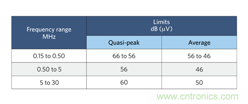 圖 1:CISPR 22 標準 B 類傳導 EMI 規(guī)范。
