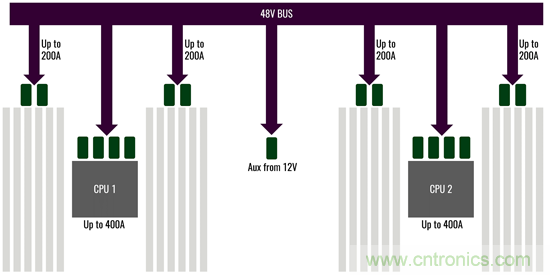 圖字:48V總線(xiàn);高達(dá)200A;來(lái)自12V的輔助電源