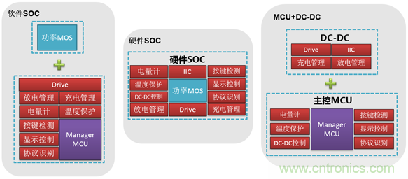要設(shè)計一款好的PD移動電源,選擇合適的架構(gòu)非常重要。目前市面上主要有硬件SOC、軟件SOC、MCU+DC-DC三種架構(gòu):