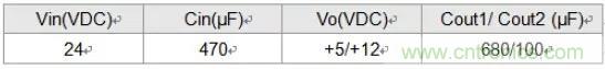 為了進(jìn)一步穩(wěn)定輸入電源,在輸入端增加一電容Cin,若為了進(jìn)一步減小輸出紋波和噪聲,可在輸出端增加一串聯(lián)等效阻抗小的電容Cout,但容值不能超過該產(chǎn)品的最大容性負(fù)載,否則會造成電源模塊啟動不良。推薦外接電容值,如表1所示。