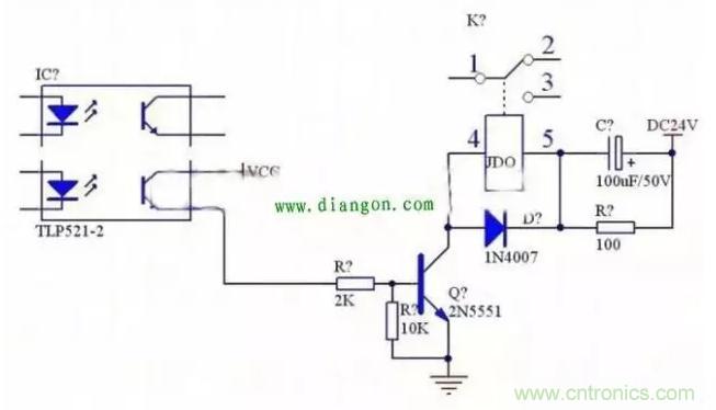 當(dāng)輸入高電平時,晶體管T1飽和導(dǎo)通,繼電器線圈通電,觸點吸合。當(dāng)輸入低電平時,晶體管T1截止,繼電器線圈斷電,觸點斷開。