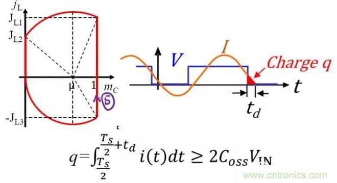 要回答這個定量問題,其實(shí)是不那么簡單的。對于PWM converter,參考quasi-square-wave ZVS buck converters,我們是可以畫出state plane,然后根據(jù)state plane圖的幾何關(guān)系定量分析出來的,但是非常繁瑣,常常是七八個三角函數(shù)等式求解。所以我個人愚見,在設(shè)計(jì)上,就讓開關(guān)頻率小點(diǎn),電感值小點(diǎn),讓電感電流ripple足夠大,能達(dá)到負(fù)值就差不多了。對于resonant converter,倒是可以簡單地通過積分方法,算出i與t的積分,讓這個it積分大于Coss上的charge就行。比如已知impedance,算出V與I的phase shift,然后換算成時(shí)間td,然后在td上對電感電流進(jìn)行積分,只要這個積分大于等于Coss*Vin就行了。