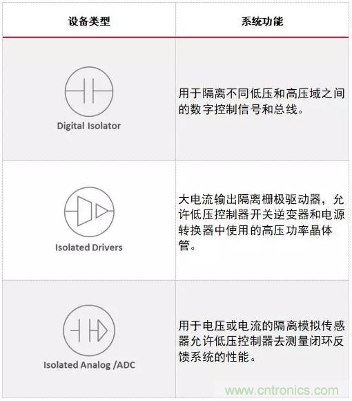 表1:電動(dòng)車輛系統(tǒng)中使用的隔離元器件